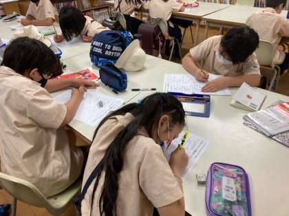 今日から3・4年生の希望者を対象としたジャガピースクールが始まりました。担当の先生に用意していただいたプリントを中心に学習を進めています。