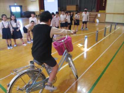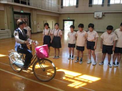 5月1日 西成警察署ぼ交通課の方をお招きして、5,6年対象で自転車交通安全教室を実施しました。
