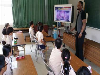 梅南中学からアレン先生に来ていただいて、5年生の外国語活動を行いました。