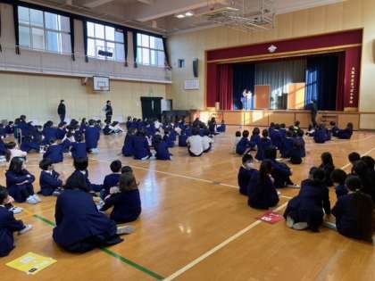 本日のたてわり集会はBグループが行いました。ゲーム集会で、もの当てクイズをして楽しみました。