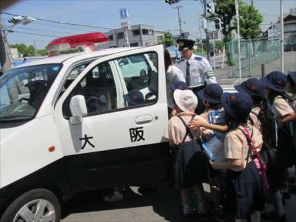 5月27日 2年生町探検の別バージョンです。中津守の交番のおまわりさんに、ミニパトの中も見せていただきました。