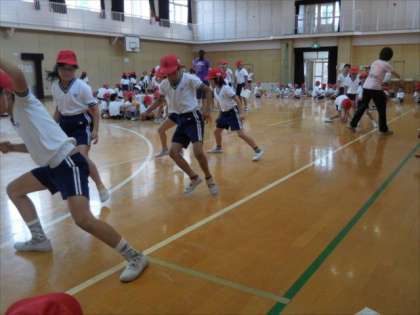 5月28日 全学年がたてわり班でスポーツテストを行いました。水族館班(たてわり班)でスポーツテストをしているのは、全市でもほんの数校です。