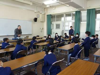 今日、2年生は聴覚障がいがある方にお越しいただいて、出前授業を行いました。苦労されていることや、普段の生活などのお話を聞き、困っている人に優しくする心や、誰もが暮らしやすい町について理解を深めました。