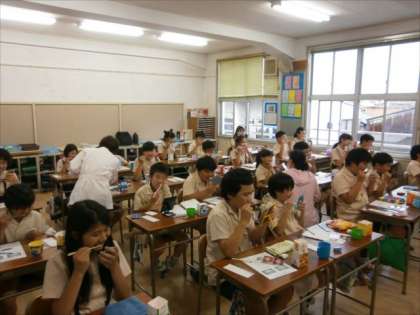 給食の後、歯を磨いたはずなのに、薬品をつけて検査をすると歯磨きの足りないところがはっきりわかりました。自分の歯磨きについて見直すよいきっかけになりました。
