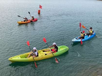 さあ、海へ出発です。友だちと心を合わせて、レッツ ゴー!