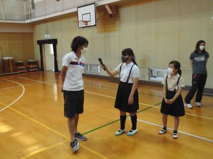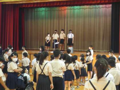 今週のたてわり集会は2組で、ビンゴゲームを行いました。祭りの食べ物といえば何かを先生にインタビューをし、何が発表されるかを予想して楽しみました☆