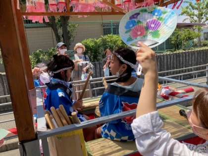 先日の日曜日に地域で「子どもみこし」があり、鶴見橋商店街を中心に巡行しました。まつば小学校の児童も多数参加し、がんばりました♪