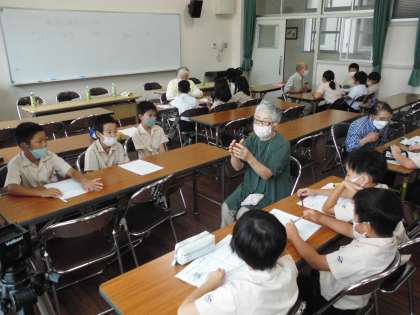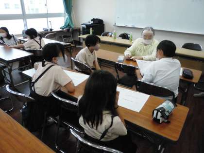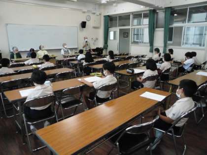 今日、4年生は語り部さんにお越しいただき、戦時中や戦後のお話を聞きました。4年生は大阪の空襲を中心に平和学習を進めています。学習を進め、平和の大切さについて理解を深めていけることを願っています。