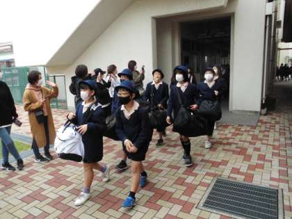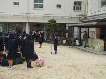 待ちに待った6年生の修学旅行がスタートしました。まずは出発式です。天候にも恵まれて笑顔で出発しました。貴重な経験をして、楽しい思い出をつくってきて欲しいと思います。