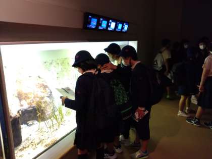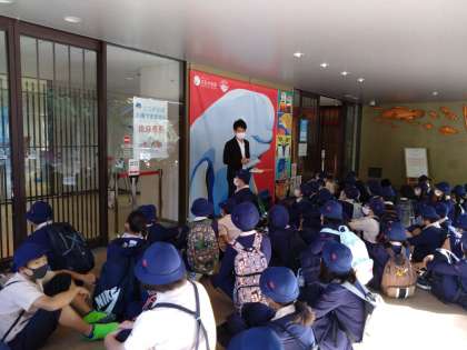 宮島水族館の見学の様子です。水族館を楽しみにしてた児童も多かったようで、充実した見学ができたようです。
