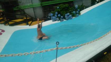 魚つかみとあさひロッジさん自慢のウォータースライダーを楽しみました。魚は、全部つかまえ、ウォータースライダーは、何度も!焼いた魚もペロリでした。その後、お風呂に入ってゆっくりしてます。