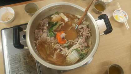 夕食は、かも鍋です。こんな感じです。おいしそうです。おかわり連発です。