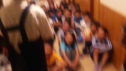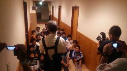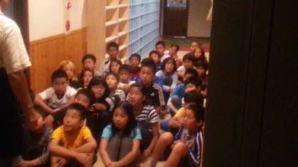 宿舎のおじさんの怖い話にびびりまくる子どもたち。あれ?!ちゃんと撮っているはずなのに、画像が乱れてる〜?