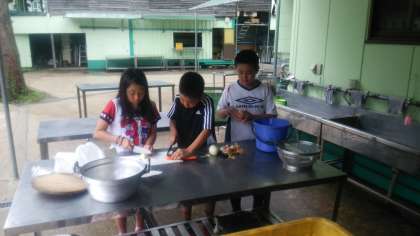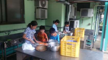 野菜や肉を切る、火をつける連携と連絡が大切なのです。