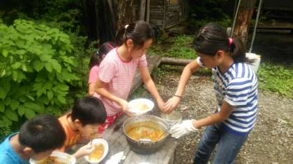 カレーがおいしくできました。全てのグループが、おいしくできました。