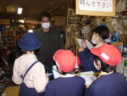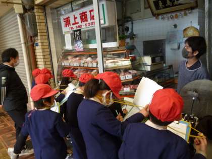 子どもたちは質問をして、一生懸命メモを書いていました。今回お伺いさせていただいたお店の皆様、ご協力ありがとうございました。