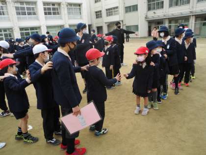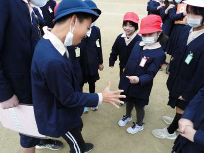 今日のたてわり集会は、運動場でじゃんけん列車を行いました。最後の方には長い列ができました。楽しく過ごすことができました。