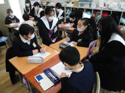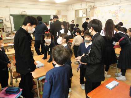 今日は梅南中学校の1年生が小学校へ来て、2年生がピアサポート体験を行いました。中学生と交流し、サポートを受けながら「かけ算の九九ビンゴ」を行いました。「おもしろかった。」との声をたくさん聞き、楽しい時間を過ごしました。
