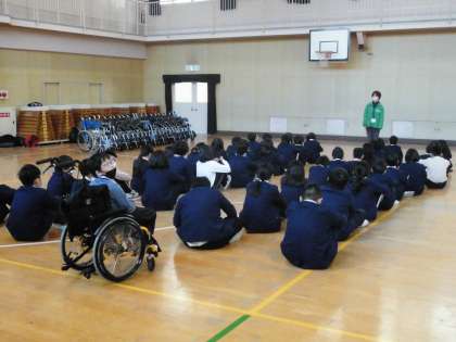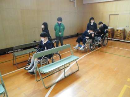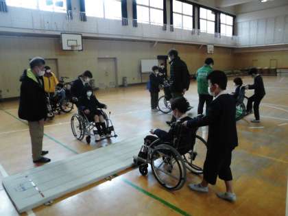 今日、4年生は社会福祉協議会の方にお越しいただき、車いす体験を行いました。