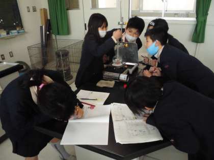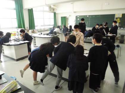 4年生の理科では、3学期になってから理科室を使い、実験や観察の学習を進めています。現在は、水の温まり方について実験・観察を行っています。