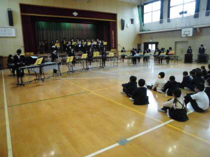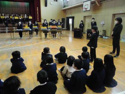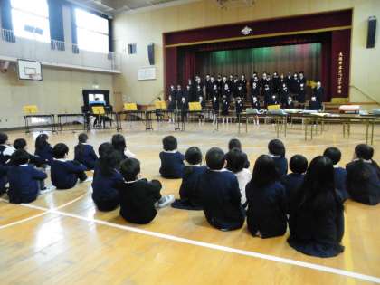 今日1年生は、6年生に招待されて参観に行う音楽発表のリハーサルを鑑賞しました。6年生の一生懸命な姿に、1年生は感動し感想を伝えていました。