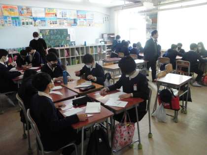 6年生は今週に卒業しますが、卒業前に校長先生による特別授業がありました。グループごとに協力して活動を進めるワークショップ型の授業を行いました。最後に思い出を重ねることができました。