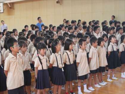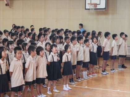 2学期が始まりました。始業式では、夏休み中に大きなけがや事故がなく無事に過ごせたこと、早寝、早起き、朝食、あいさつの良い習慣を取り戻すこと、校長先生からの自由研究発表がありました。