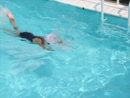 9月4日 1,2年のプールでの学習が終了しました。「水遊び」ということで友だちとなかよく浮いたり、もぐったり、水に慣れてきました。