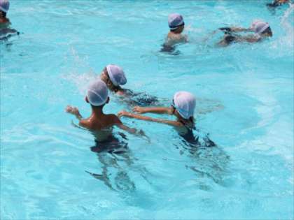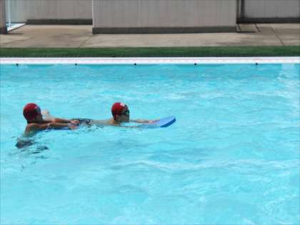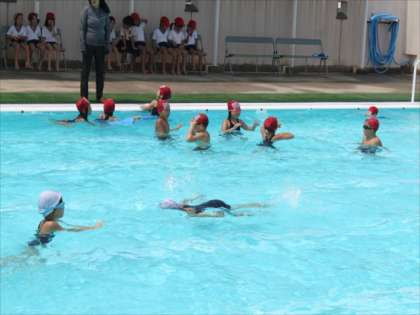シャワーが苦手な子、顔を水につけられなかった子も少しずつ努力しました。25mを泳げるようになった子もいました。みんなよくがんばりました。