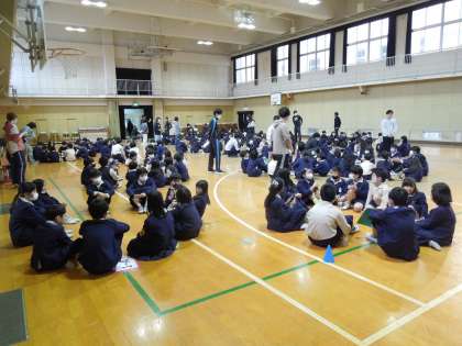 今日からたてわり集会が始まりました。今日は初めてということで、グループごとに自己紹介をしました。最後はリーダーとじゃんけんをして教室へ戻りました。