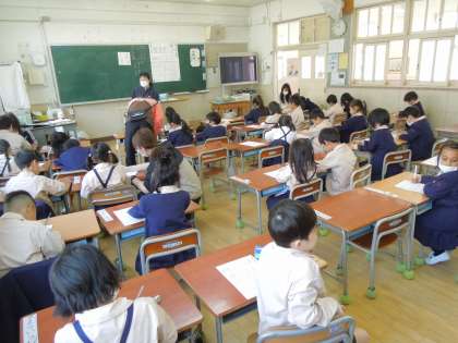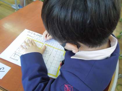 1年生は少しずつ学校生活のリズムに慣れてきています。現在はひらがなの学習もがんばっています。ていねいに書いて、読み書きができるように願っています。