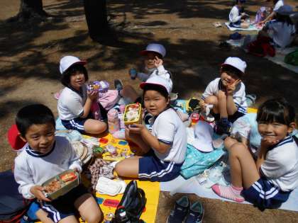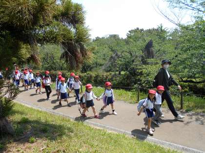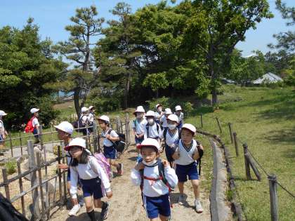 今日は1・2年生が春の遠足で浜寺公園へ行きました。