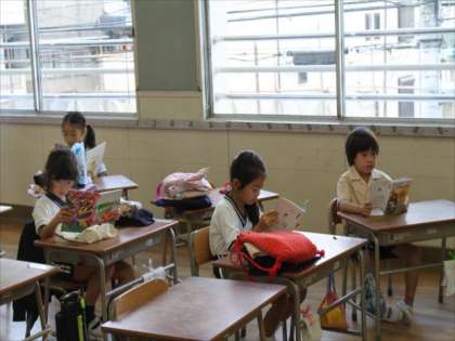 1の2は、プラムの会の方が読み聞かせとかみしばいをしてくださいました。ほぼ毎週金曜日来校していただいています。ありがとうございます。(写真上、中1−2)(写真