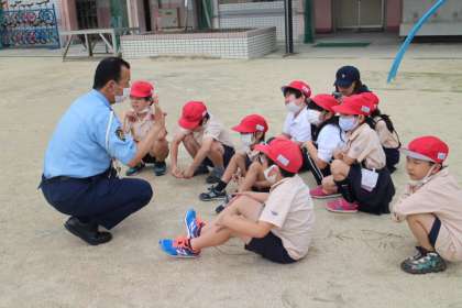 今日は西成警察の方にお越しいただき、交通安全指導を行いました。1・2年生は交差点付近での歩行を中心に、3年生以上は自転車を乗る際の注意点などの学習をしました。安全に気を付けて過ごしてほしいと願っています。