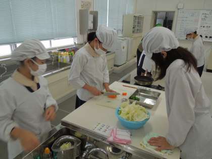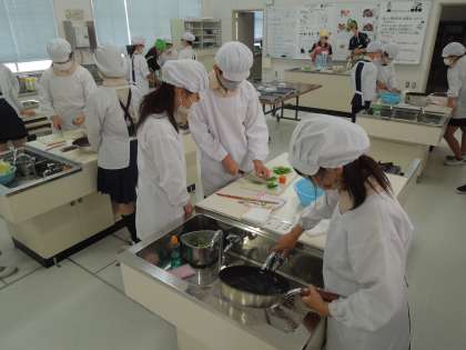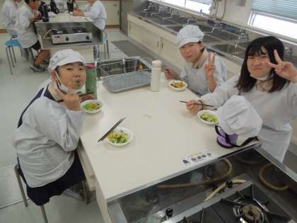 今日は6年生が調理実習を行いました。今回は野菜炒めを作りました。
