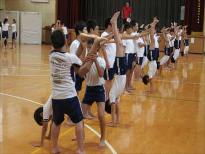9月24日 5,6年の運動会の練習3人組、5人組、6人組などの練習をしました。人数が多くなってきたので、声を掛け合い、コミュニケーションをとることが大変重要です。