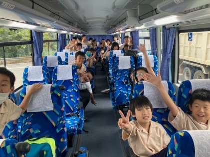 5年生の1泊移住がスタートしました。好天に恵まれ、元気いっぱい、笑顔いっぱいの出発となりました。