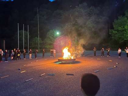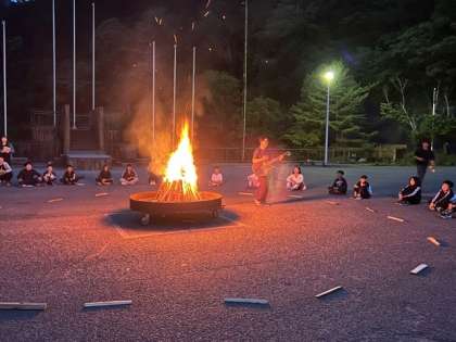 キャンプファイヤーです。まずは、校長先生のギターから!🎸