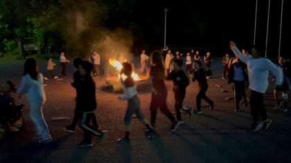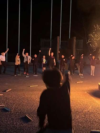 キャンプファイヤーです。全力で楽しんでいる様子が伝わってきます。明日の活動も楽しみです。