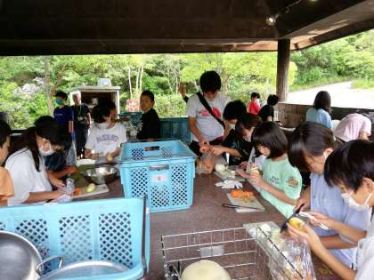 カレーづくりのスタートです。説明を聞いて、食器や食材を準備するところから始めます。おいしくできるかな?🍛