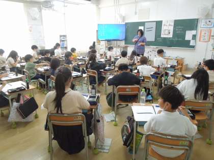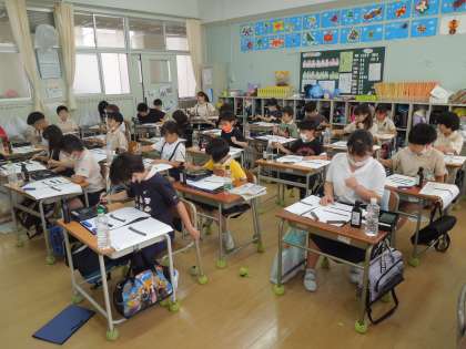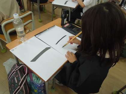3年生より筆と墨を使った習字の学習がスタートします。今日は初めての習字を行いました。