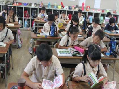 読書タイムつづき(写真上 3年)(写真中 2−1)(写真下 1−2)