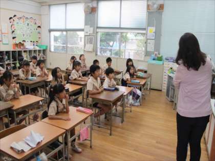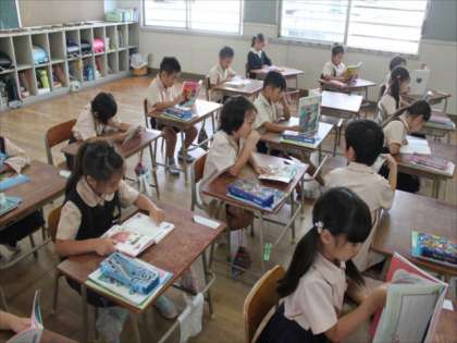 プラムの会の読み聞かせは、2−2で、今日は紙芝居を読んでいただきました。(写真上) (写真中1−1)