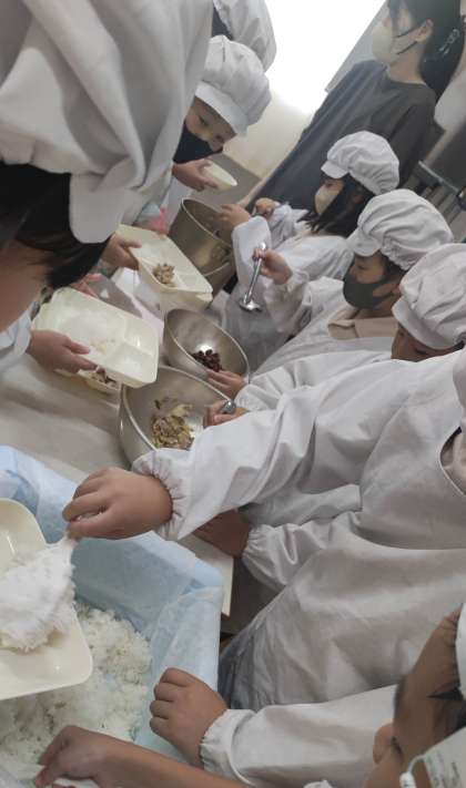 最初、金時豆が苦手と言っていた子どもも、食べてみておいしかったのか、おかわりをしてくれていました。
