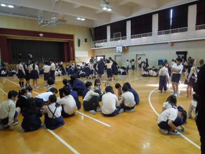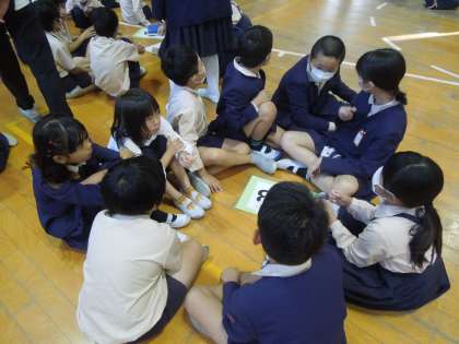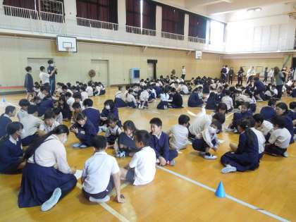 今朝はたてわり集会がありました。今日は「秋の食べ物といえばビンゴ」をしました。班ごとに協力して考えました♪