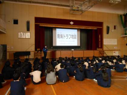防災講座では、自然災害の恐ろしさ、身の守り方を学び、最後に防災クイズをして盛り上がりました。