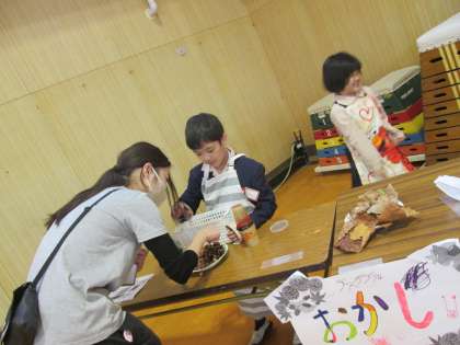 どんぐりと松ぼっくりを使ったおかしやさんもありました。