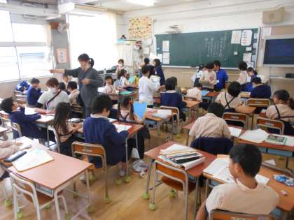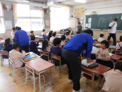 1時間めは、1年生のクラスに入り、子どもたちは嬉しそうでした。