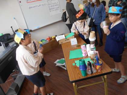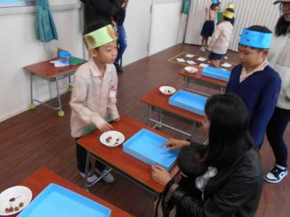 それに加えて今回は、学習参観に来てくださったお家の人たちにもお客さんになってもらいました。お家の人たちも子どもたちも、それぞれのお店でとても賑わっていました。