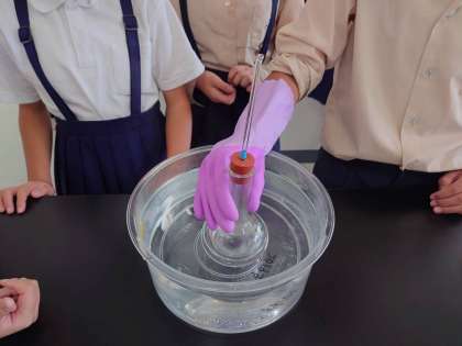 色んな実験道具がありいつもとは違う雰囲気の中での授業にドキドキわくわくです。